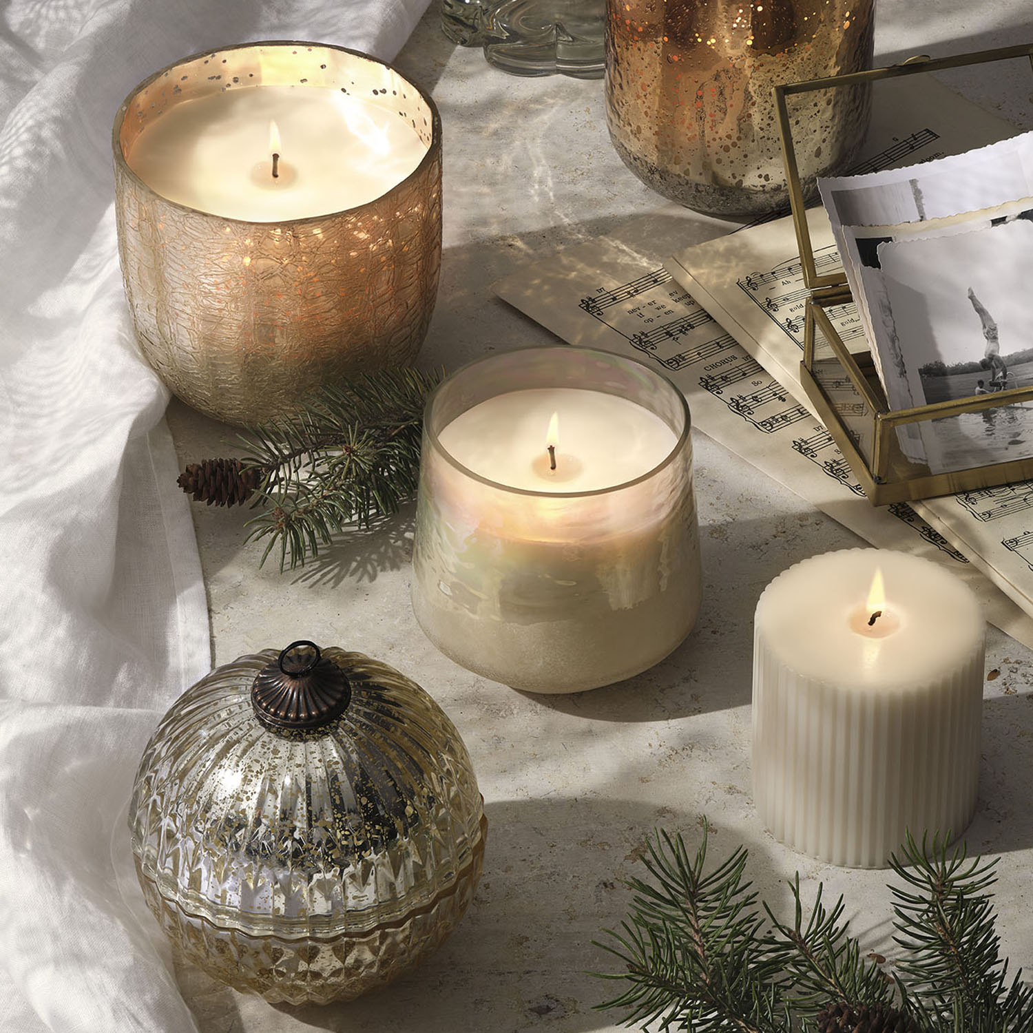 Catalog Name: Winter White Mercury Glass Ornament Candle