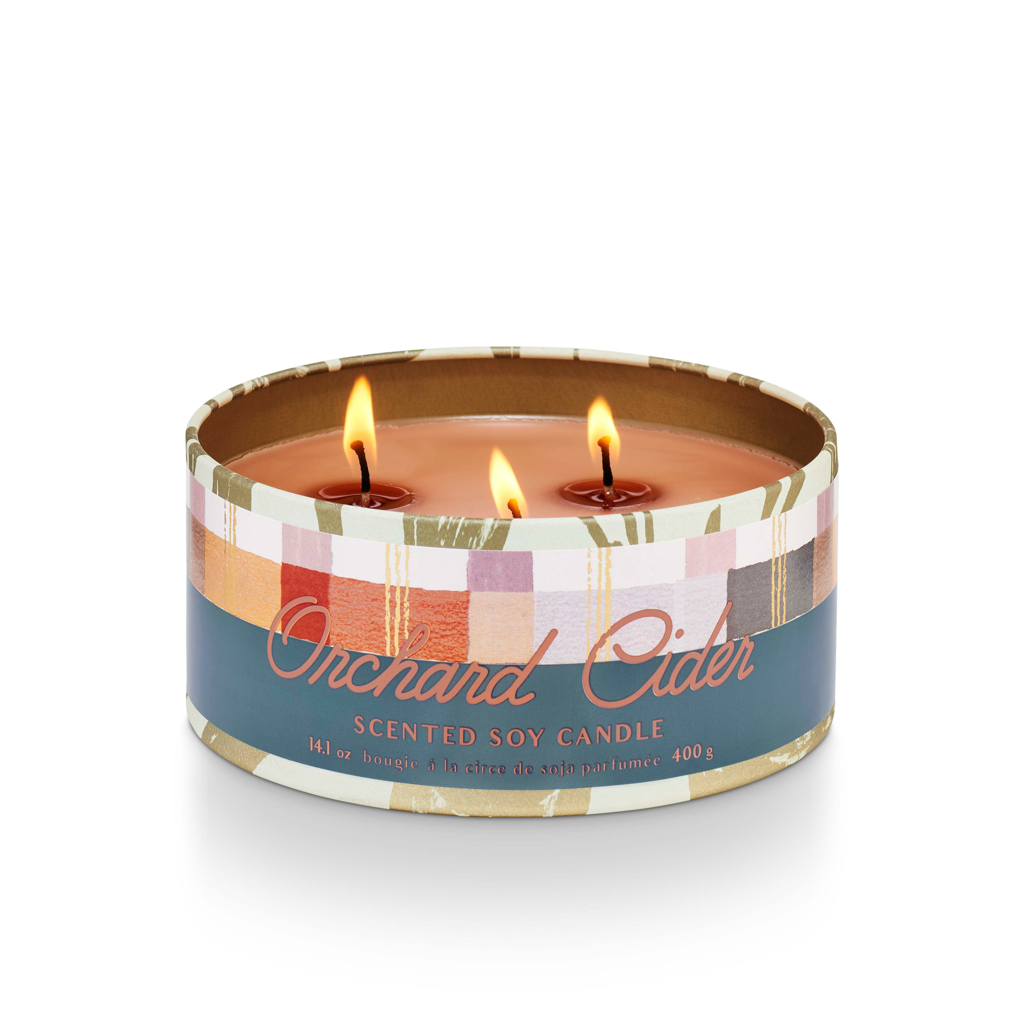 Fragrance Description: Notes of fresh cider, pomegranate, and clove. This scented 14.1 oz tin candle with lid makes a great gift. 30 hour burn time.